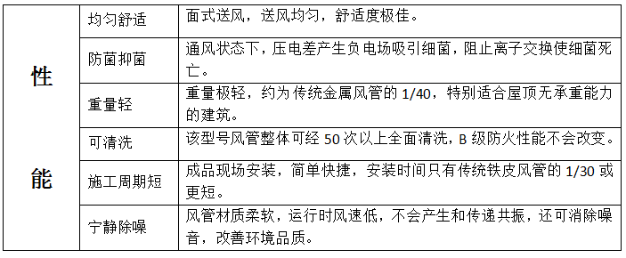是以阻燃負離子纖維布面為基材的風管產品,制冷暖通上對呼吸質量有需求時被選用的形式。因其在通風狀態下,可持續釋放對人體有益的負氧離子,具有凈化空氣、消煙除塵、改善呼吸環境、提高機體免疫力等功效,滿足了部分工程空氣清新的要求。負離N型系列產品達到國家建筑材料防火等級B級標準,可應用在各類對呼吸質量有要求的場所。
