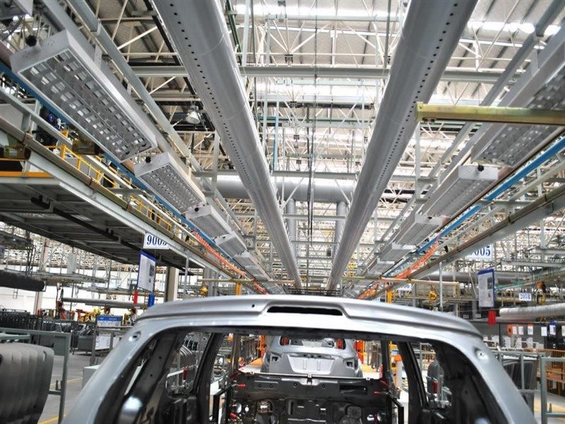 隨著汽車行業的高速發展,汽車工廠車間也出現了很多問題,由于內部空間結構復雜,機械設備多,作業人員多,生產廢料多,在使用中央空調時存在一些問題,而瀑布空氣分布器的應用正好解決了這一問題,這種由性阻燃纖維織成的空氣分布器,通過表面纖維滲透和連續的孔口射流兩種獨特的出風模式,實現了真正意義上的均勻送風。由激光開在表面上的連續小孔,可以形成連續的線形送風帶,可以有效的解決工位線送風的需要。